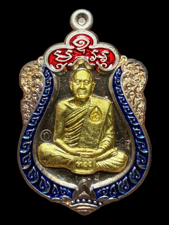 เหรียญเสมาหลวงพ่อทอง รุ่นทองสิบทิศ ปี 2563 เนื้อนวะหลังเรียบลงยาขอบ หน้าทองคำ หมายเลข ๑๗ |