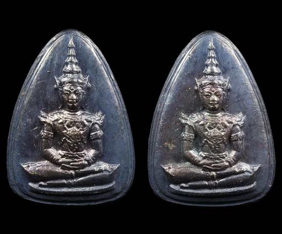 100 / พระแก้วมรกตเนื้อเงิน 2 องค์คู่ สมเด็จพระญาณสังวรวัดบวรนิเวศ รุ่นมรดกโลก ปี 2536