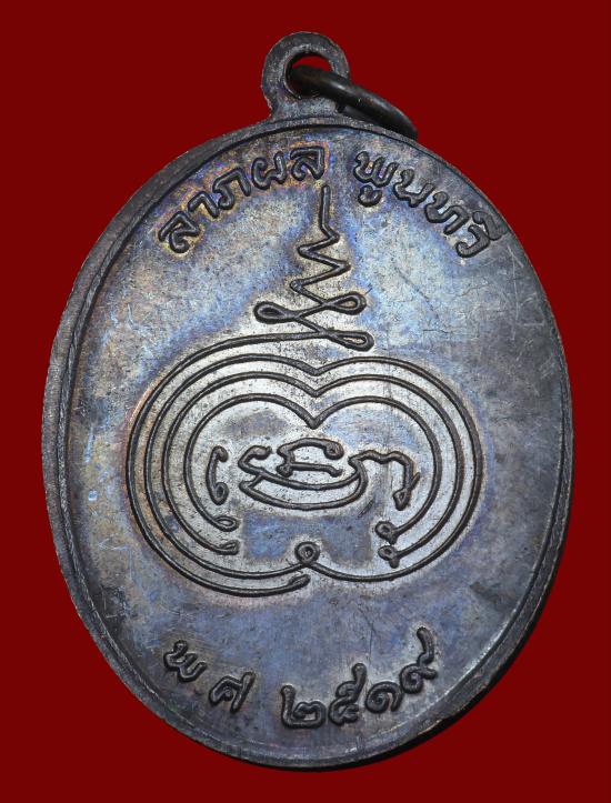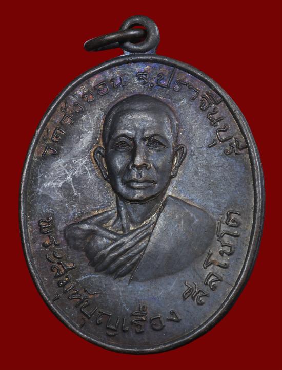 เหรียญรุ่นแรก หลวงพ่อบุญเรือง วัดวังขอน เนื้อทองแดงรมดำ ปี 2519 จ.ปราจีนบุรี |