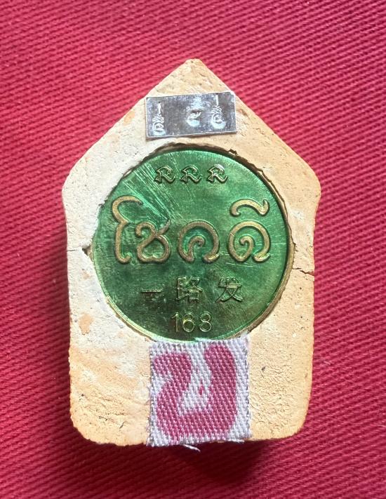 วัดใจไปเลย ขุนแผนโชคดี 168 ตุ๊ลงเต่า วัดอุโบสถ จ.เชียงใหม่ เนื้อผงพรายสีส้มลายหินอ่อน หลังปิดผ้าอาถรรพณ์ ฝังเหรียญโชคดี หมายเลข 5 |