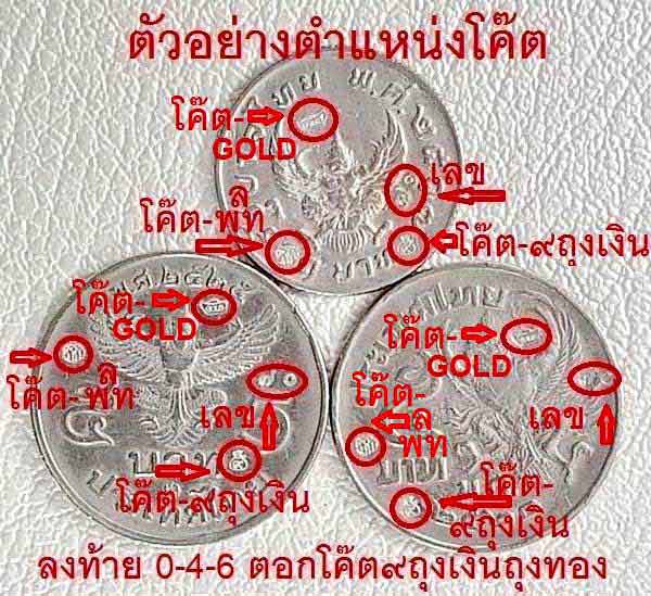 {เหรียญเนื้อนิเกิล เลข 96 {โค๊ต๙ในถุงทอง} ลงท้าย 0-4-6 ตอกโค๊ต๙ในถุงทอง}