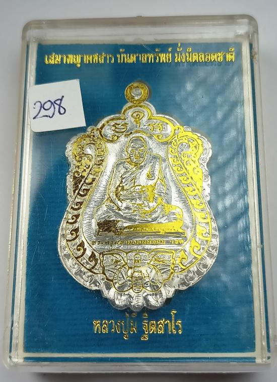 เหรียญเสมาคชสาร บันดาลทรัพย์ มั่งมีตลอดชาติ หลวงปู่มี วัดโพนทอง เนื้อกะไหล่เงิน (แจกศูนย์) เบอร์ 298 พร้อมกล่องครับ