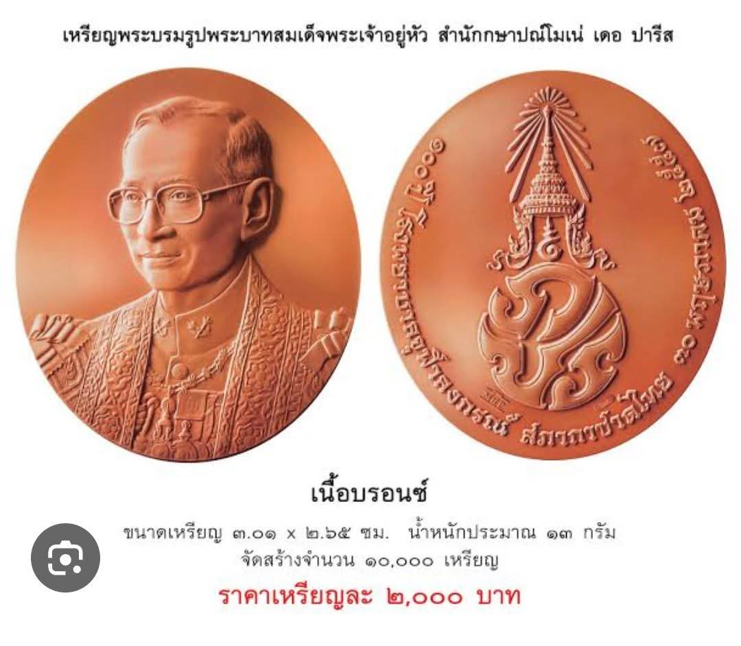 เหรียญ ร.๙ (100ปีสภากาชาดไทย) เนื้อบรอนซ์ โมเน่ ฝรั่งเศส #จอง2000