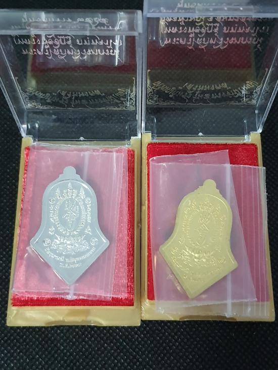 เหรียญกันชงหลวงพ่ออิฏฐ์ วัดจุฬามณีรุ่น 5 เสริมมงคลพิมพ์ใหญ่เนื้อเงินลงยาและ เนื้อทองแดงกะไหล่ทองลงยา ปี 2565 จังหวัดสมุทรสงคราม กล่องพร้อม ใบการันตี รับทีเดียว 2 องค์