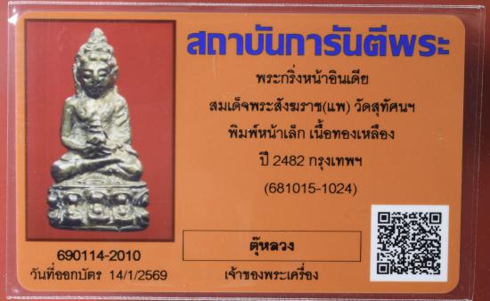 เคาะเดวแดง พระกริ่งหน้าอินเดียสมเด็จพระสังฆราช(แพ)วัดสุทัศนฯพิมพ์หน้าเล็กเนื้อทองเหลื่องปี2482 กรุงเทพฯ |