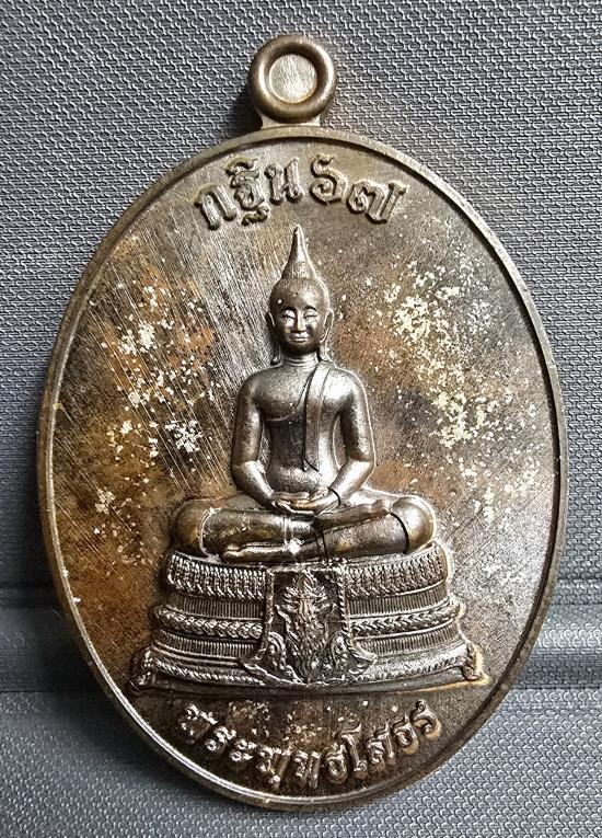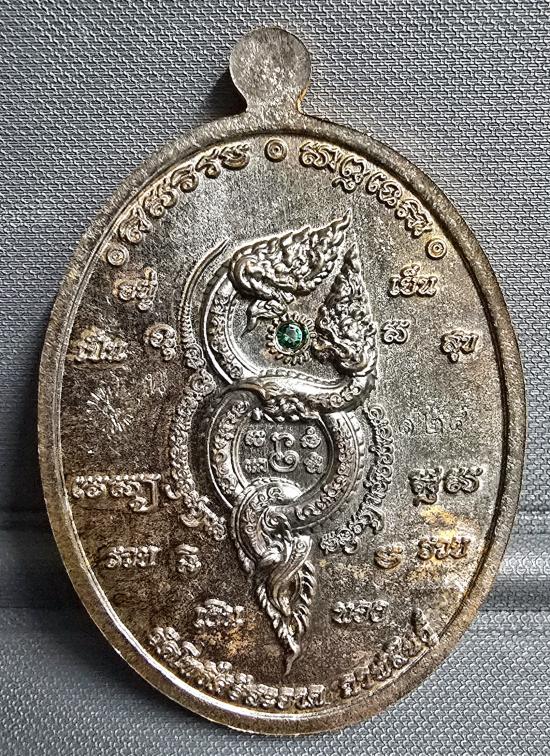 เนื้อนวะโลหะ พรายเงิน หลังฝังพลอยเขียว หมายเลข ๑๒๔...พร้อมกล่อง