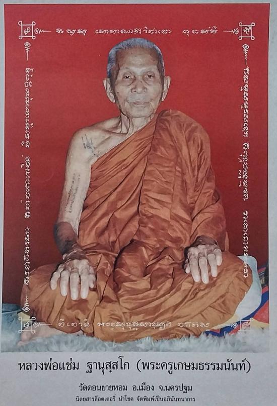 รูปภาพหลวงพ่อแช่ม วัดดอนยายหอม ห่มจีวรเฉวียงบ่าพาดสังฆาฏิ นิตยสารลอตเตอรี่นำโชค จัดพิมพ์ถวาย ปี35 |