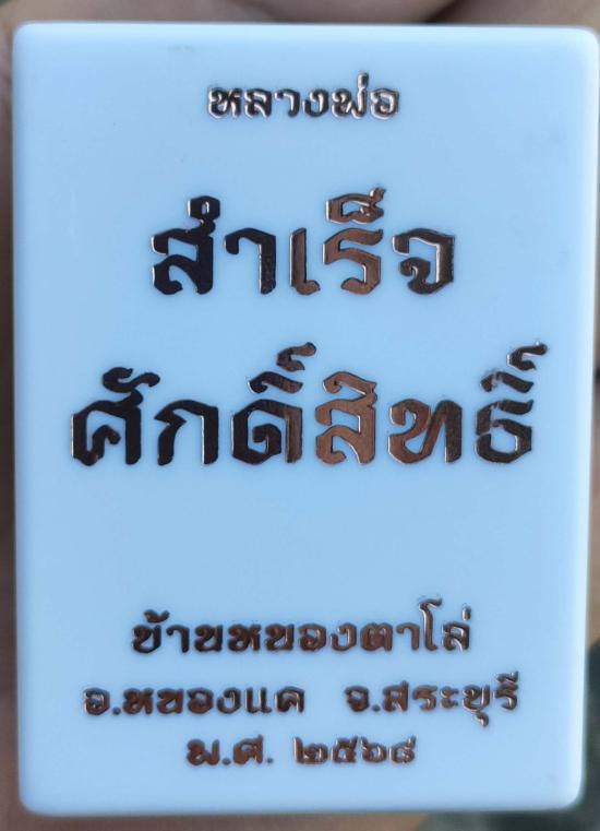 เหรียญหลวงพ่อสำเร็จศักดิ์สิทธิ์ รุ่น"พรสำเร็จ" วัดหนองตาโล่ จ.สระบุรี เนื้อชุบทอง หน้ากากนวะเต็มองค์+ช้าง ลงยารัศมีขาวป้ายแดง "นำฤกษ์" หมายเลข ๕ พร้อมกล่อง (ออกวัดที่ประดิษฐสถานขององค์หลวงพ่อสำเร็จ) |
