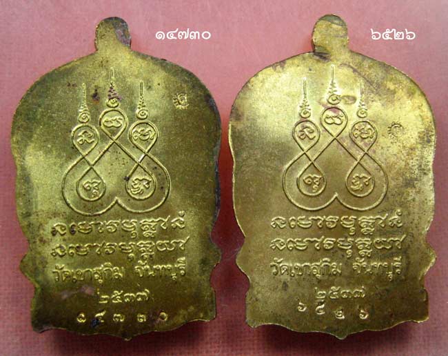เหรียญนั่งพาน เนื้อทองเหลือง หลวงพ่อสมชาย วัดเขาสุกิม ตอกโค้ด ส และโค้ด จำนวน 2 เหรียญ หมายเลข ๖๕๒๖ และ ๑๔๗๓๐ ได้มาจากคนในพื้นที่