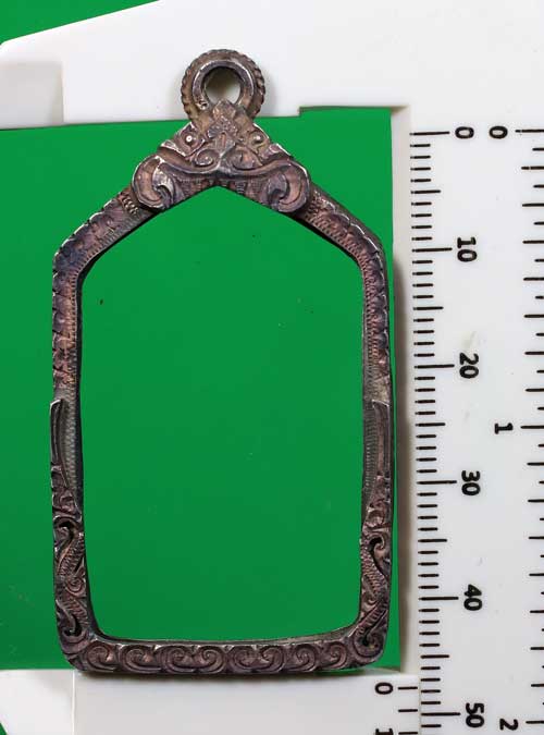 วัดใจ...กรอบเงินเก่า ใส่เหรียญห้าเหลี่ยมหลวงปู่ทวด (เงินแท้ งานเก่า)