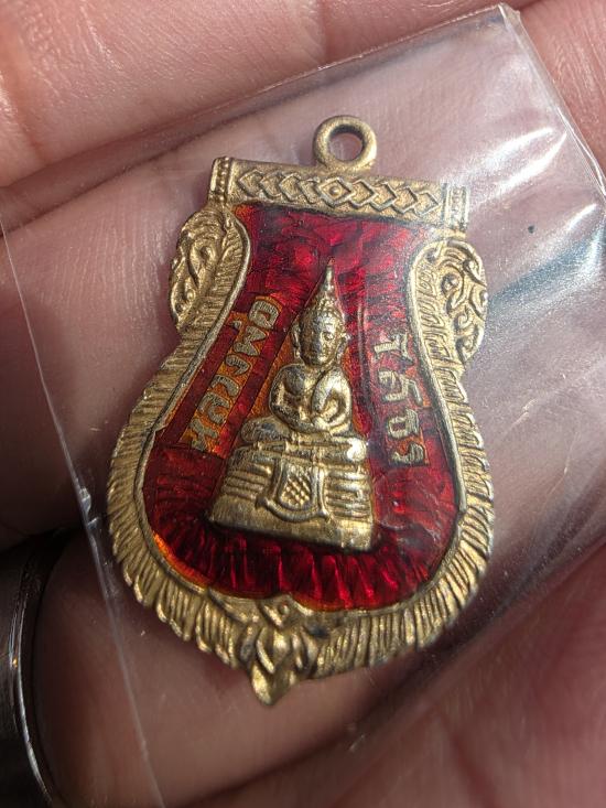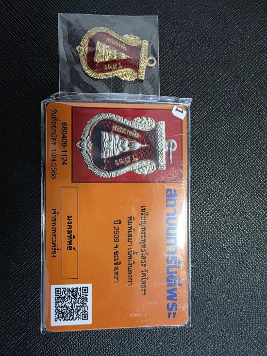 เหรียญเสมาเนื้อเงินลงยาสีแดงปี 09 กะไหล่ทองเดิมๆพร้อมบัตรรับประกัน