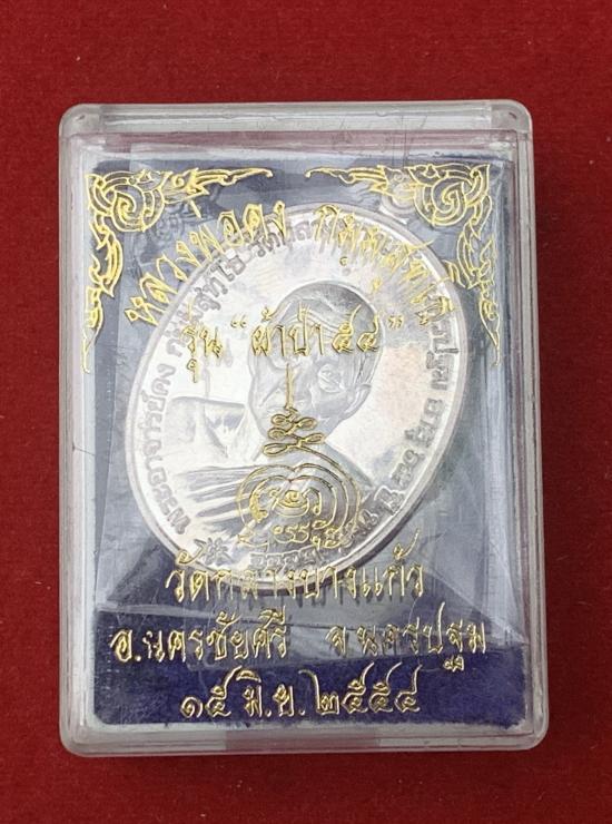 เหรียญผ้าป่า 54 หลวงพ่อสัญญา วัดกลางบางแก้ว เนื้อเงินมีจาร เลขสวย ๑๐๙ พร้อมกล่องเดิม