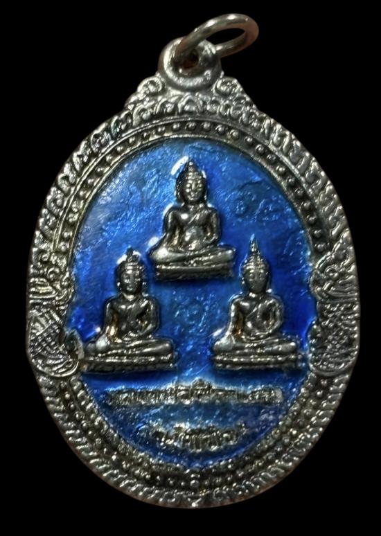 หลวงพ่อศิลาแลงสามพี่น้อง วัดหนองอ้อ หลวงปู่หลิวปลุกเสก เนื้อดะไหล่เงินลงยาหายาก |