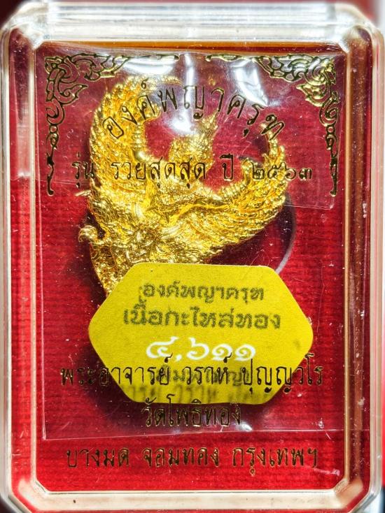 +++วัดใจ+++ องค์พญาครุฑ เนื้อกะไหล่ทอง พิมพ์ใหญ่ รุ่นรวยสุดสุด อาจารย์วราห์ วัดโพธิทอง ไม่แกะซีล กล่องเดิม หมายเลข ๔๖๑๑