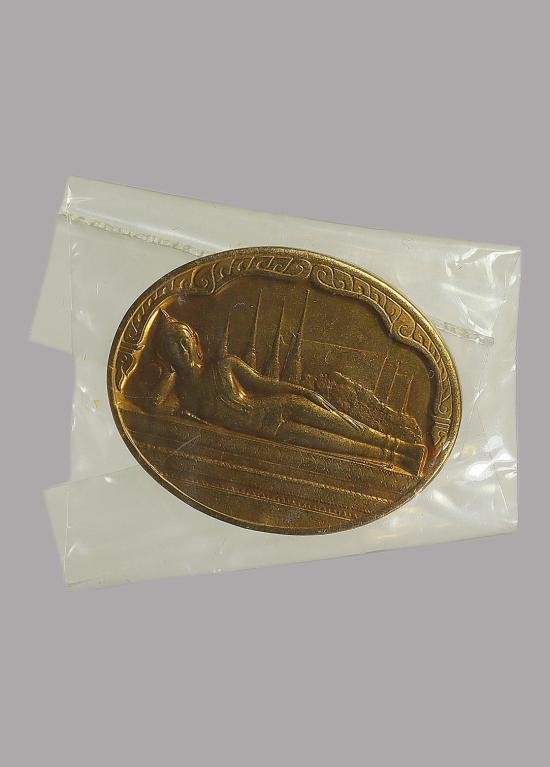 เหรียญพระนอน หลัง ภปร. พิธีใหญ่วัดโพธิ์ ฉลองในหลวงพระชนมายุครบ 5 รอบ พ.ศ. 2530 ซองเดิม |