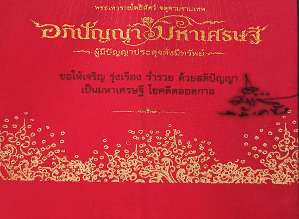 ขออนุญาตท่านอาจารย์ เฉลิมชัย โฆษิตพิพัฒน์ นำเสนอ ผ้ายันต์สีแดง อภิปัญญามหาเศรษฐี ผืนเล็ก พร้อมลายเซ็นต์สด |