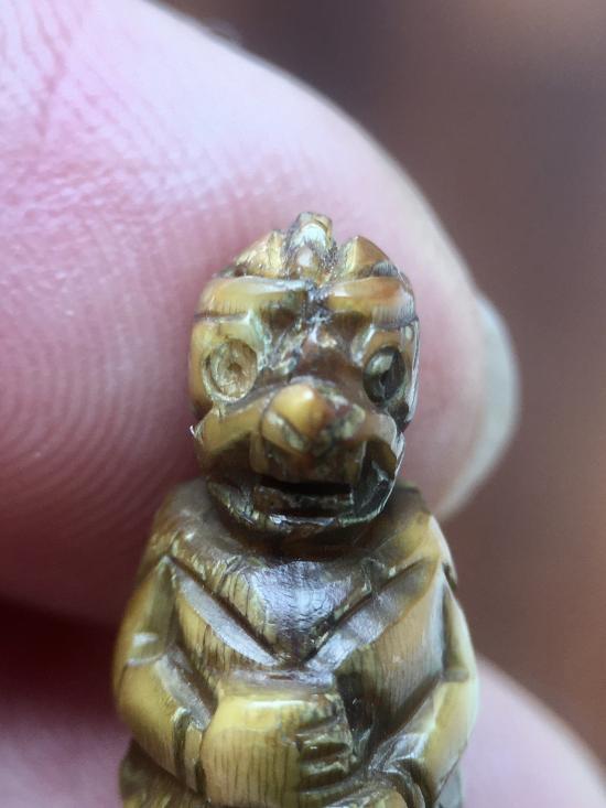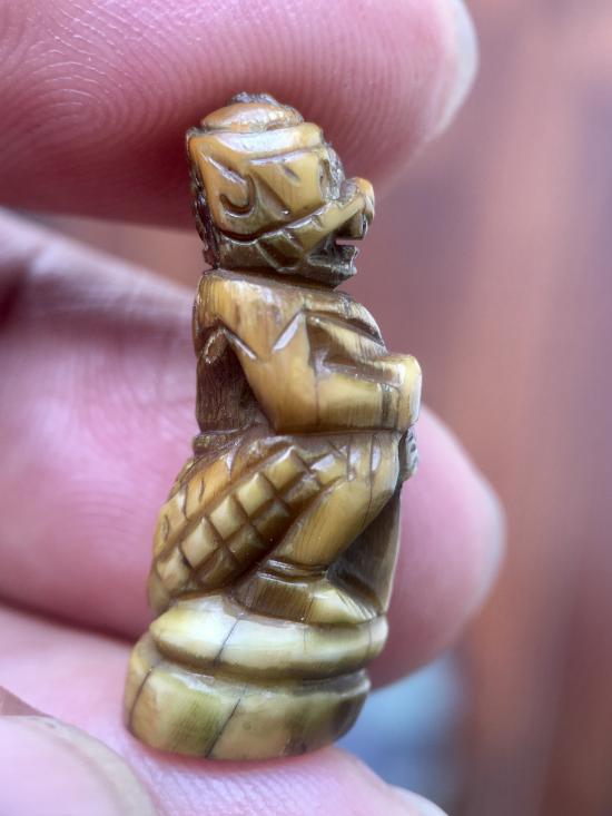 เขี้ย..เสื.. แกะหนุมานจับหลัก เก่ามาก มีจาร ขนาดโต 10 มม สูง 28 มม. |