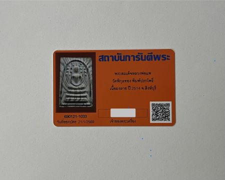 พระสมเด็จปรกโพธิ์หลวงพ่อแพ เนื้อผงลาย ปี 2514 พร้อมบัตรรับรอง G