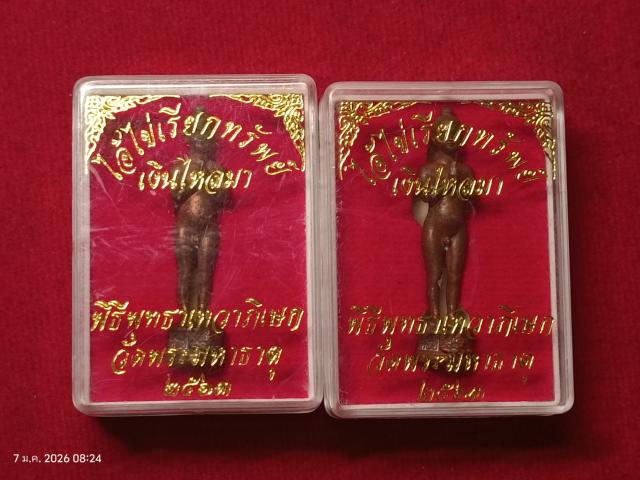 วัดใจ..... รูปหล่อไอ้ไข่ (ขาห่าง) รุ่น เรียกทรัพย์เงินไหลมา พิธีพุทธาเทวาภิเษก ณ วัดพระมหาธาตุ จ.นครศรีธรรมราช ปี 2563 ขนาด 3.5 ซม. เนื้อทองแดง โค้ตกรรมการ พร้อมกล่องเดิม |