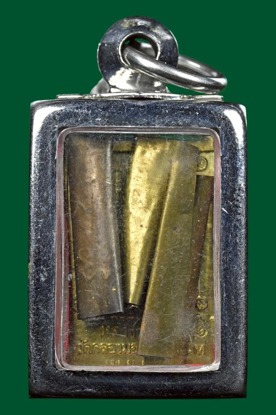 เหรียญสี่เหลี่ยมรูปเหมือน หลังยันต์เกราะเพชร ขนาดเล็ก เนื้อทองเหลือง สร้างเป็นที่ระลึก แซยิด 76 ปี ในปี 2539 |