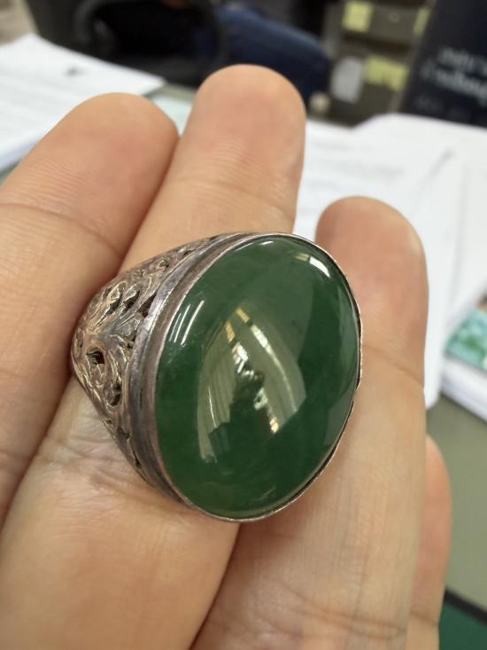 แหวนเงินหัวหยกพม่า เนื้อเทียน เม็ดโตๆ ขนาดประมาณ 62-63 ตามรูป