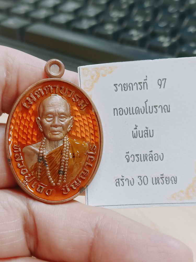 วัดใจ 100 เหรียญเมตตา บารมี หลวงปู่เถิง วัดบ้านอาลัย จ.ศรีสะเกษ 2567 ทองแดงโบราณ ลงยาส้ม จีวร หมายเลข 5 สร้าง 30 กล่องเดิม |