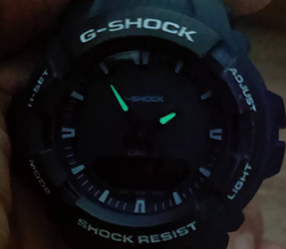 คุณสมบัติเด่น G-SHOCK G-100CU (รุ่นยอดนิยม G-100CU): ดีไซน์: สีกรมท่า Military Clean Colorความทนทาน: ทนทานต่อแรงสั่นสะเทือน (Shock Resistant) และทนทานต่อคลื่นแม่เหล็ก (Magnetic Resistant)การกันน้ำ: กันน้ำลึก \(200\) เมตร (Water Resistant 200m)ฟังก์ชัน:ระบบแสดงเวลา 2 พื้นที่ (Dual Time)ตัวจับเวลาละเอียด \(1/100\) วินาทีนาฬิกาปลุกรายวันไฟเรืองแสงอิเล็กทรอนลูมิเนสเซนต์ (EL Backlight)ปฏิทินอัตโนมัติถึงปี \(2099\)หน้าจอ: อะนาล็อก (2 เข็ม) และดิจิตอลขนาด/น้ำหนัก: ขนาด \(49.6\times 47.8\times 15.7\) มม. น้ำหนักเบาเพียง \(65\) กรัม รุ่นนี้เป็นที่นิยมสำหรับผู้ที่ต้องการความทนทานสูงในรูปลักษณ์ที่ดูเรียบหรูและสุภาพมากกว่า G-SHOCK รุ่นอื่นๆ ไฟติดพรายน้ำแม้ไม่เปิดไฟในเวลากลางคืนครับ