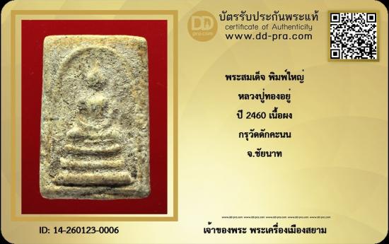 พระสมเด็จ พิมพ์ใหญ่ ปี 2460 หลวงปู่ทองอยู่ เนื้อผง กรุวัดดักคะนน จ.ขัยนาท + บัตรรับประกัน เริ่ม 150 เคาะเดียวแดง |
