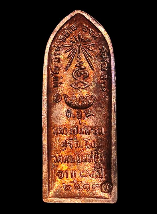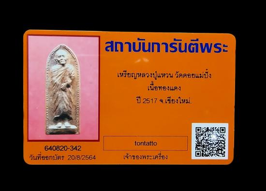 เหรียญรางปืน หลวงปู่แหวน สุจิณโณ เนื้อทองแดง ผิวไฟ ตอกโค๊ต ปี2517 พร้อมบัตรG