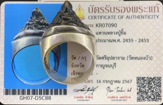 เคาะเดียวต่ำกว่าทุน!!! แหวนพิรอด หลวงปู่ยิ้ม วัดหนองบัว จ.กาญจนบุรี ปี 2435-2453 พร้อมบัตรรับรองจากสมาคม |