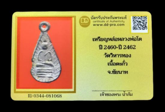 เหรียญหลวงพ่อโต วัดวิหารทอง พิมพ์ หยดน้ำ เนื้อชินตะกั่ว ปี พ.ศ.๒๔๖๐-๒๔๖๒ (หลวงปู่ศุข ปลุกเสก) (พร้อมบัตรรับรอง) |