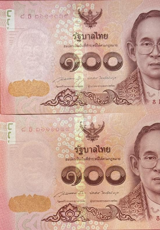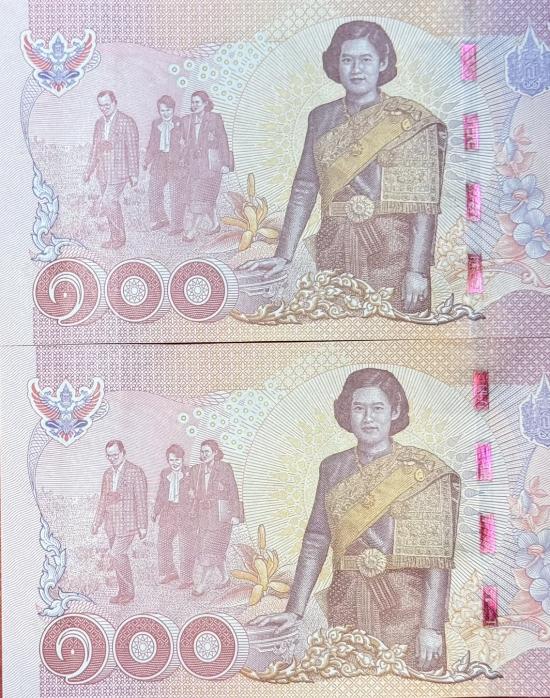 ธนบัตร 100 บาท รุ่นลองพระชนมายุ 5 รอบ ในสมเด็จพระเทพรัตนราชสุดาฯ สภาพสวยตามรูป จำนวน 2 ใบ |