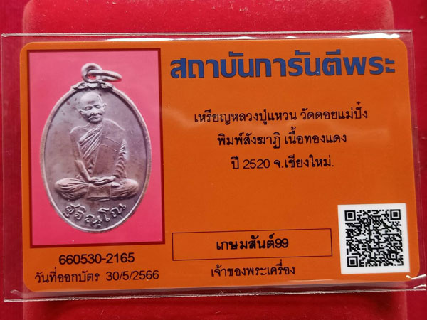 ชื่อพระเครื่อง เหรียญสังฆาฏิ หลวงปู่แหวน สร้างปี2520สภาพสวยแชมป์มาพร้อมบัตรรับประกัน