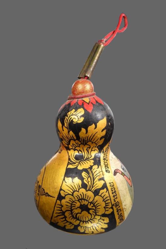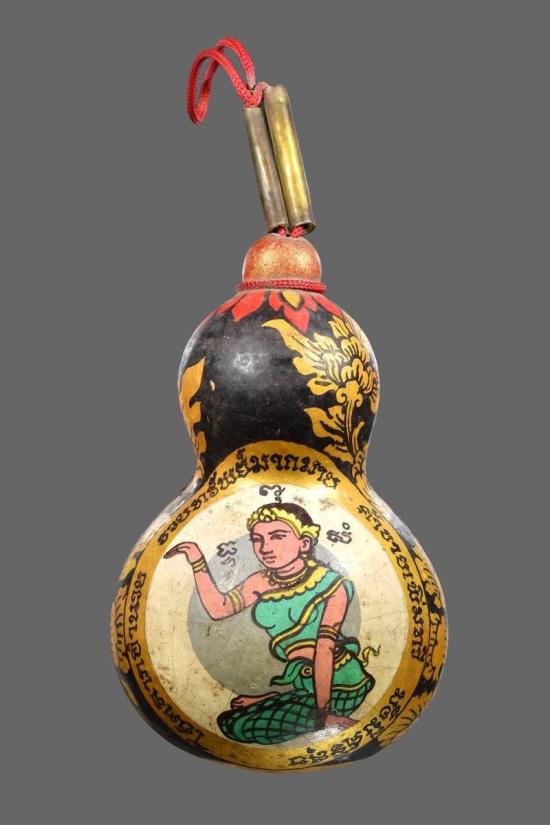 พระบูชาน้ำเต้านางกวัก นะโม ลายกนกไทยเก่า สีเก่า กว้าง 8 เซ็น สูง 12 เซ็น ไม่ทราบสำนักหรือวัดครับ
