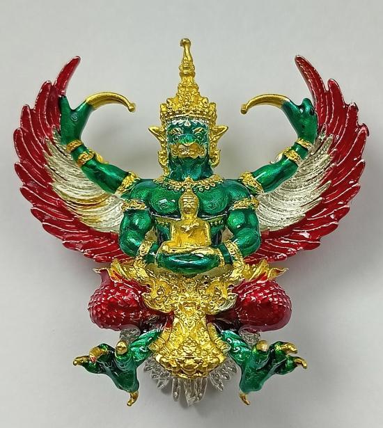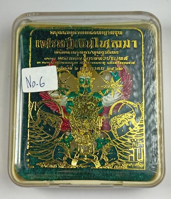 (เลขเดี่ยวสวย เบอร์ 6) พญาครุฑ รุ่น เศรษฐีเงินไหลมา วัดพระมหาธาตุวรมหาวิหาร เนื้อตริยโลหะ ชุบ2กษัตริย์ ลงยาราชาวดี เบอร์ 6 พร้อมกล่องเดิมครับ