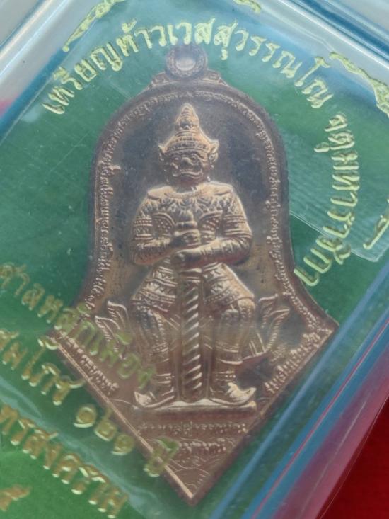 เหรียญจำปีท้าวเวสสุวรรณโณ เนื้อทองแดงขัดเงา รุ่นศาลหลักเมือง หลวงพ่ออิฏฐ์ วัดจุฬามณี ซีลเดิมลุ้นเลขสวย 2 เหรียญ |