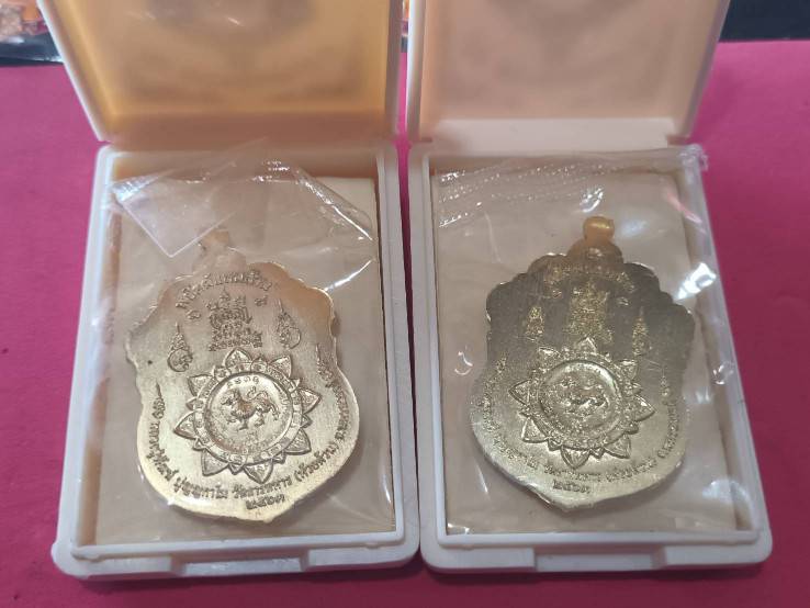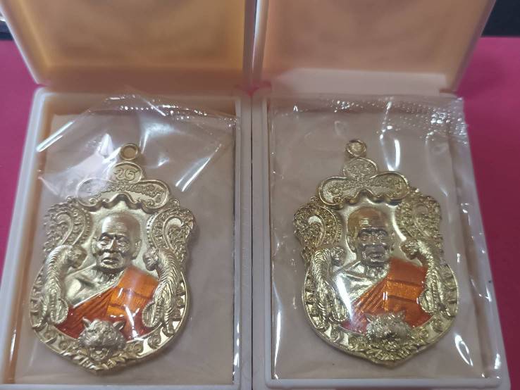 แพ็คคู่ 2เหรียญพยัคฆ์แสนล้าน หลวงพ่อพัฒน์ เนื้อทองทิพย์ลงยาจีวร No.483,43764พร้อมกล่องเดิม