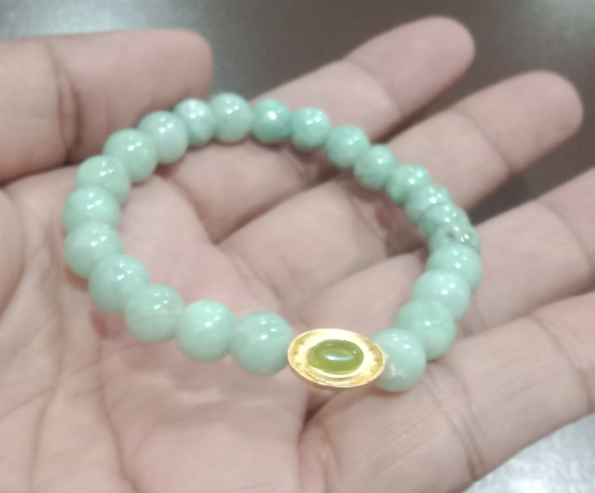 สร้อยข้อมือหยกพม่า/ขนาด8มิล/ร้อยยางยืดใส่สบาย/สินค้ามือ1 |