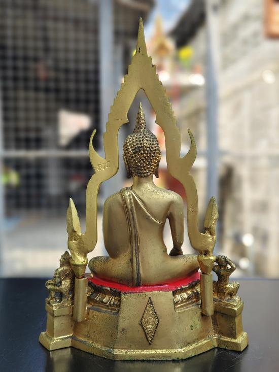 พระพุทธชินราช ภปร. เนื้อโลหะกะไหล่ทอง ประมาณปีสองห้าสามกว่า ด้านหลังอกเลา |