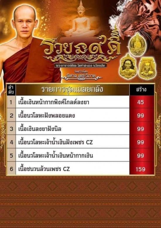 พระอาจารย์ต้อม วัดท่าสะแบง จ.ร้อยเอ็ด รุ่นรวยนะ9ดี พิมพ์เสือคู่บารมี (แถมยกลัง รก.2 เนื้อนวะโลหะฝังพลอยแดง) No.7 (สร้างน้อยมาก 99 เหรียญเท่านั้น) พร้อมกล่องอย่างดี |