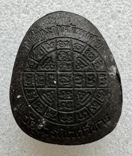 พระปิดตายันต์ดวงเล็ก ปี 2523 สมเด็จพระญาณสังวร (เจริญ) วัดบวรนิเวศนิเวศน์ เนื้อผงใบลานดำ ตะกรุดเงิน