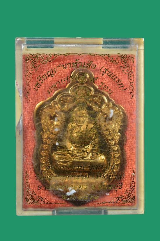 เหรียญเสมาหัวเสือ รุ่นมหาเศรษฐี ๙ รอบ หลวงปู่ทวน วัดโป่งยาง จ.จันทบุรี เนื้อสัตตโลหะ ไม่ตัดปีก หลังเรียบจากชุดกรรมการ พิเศษมีรอยจาร มีกล่องเดิม |