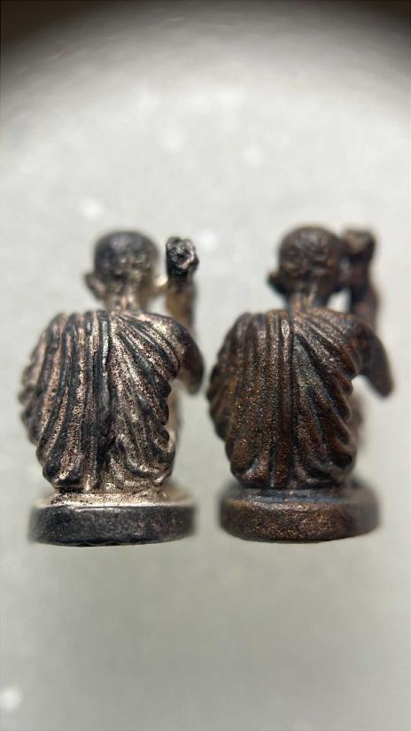 รูปหล่อจิ๋ว ถือไม้เคาะหัว รุ่น มั่งมีทวีคูณ ปี๒๕๓๙ เนื้อเงิน เนื้อนวะ |