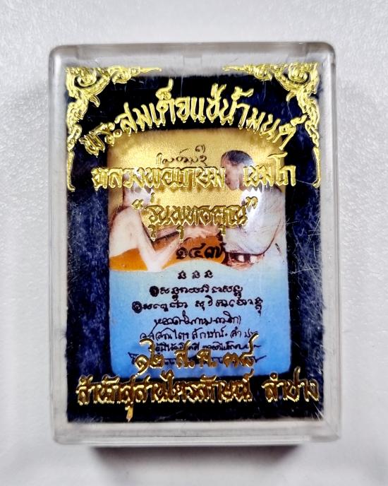 ล็อกเก็ต สนทนาธรรมพ่อเกษมเขมโกกับในหลวงร 9 ด้านหลังสมเด็จแช่น้ำมนต์ หมายเลข147 พร้อมกล่อง |