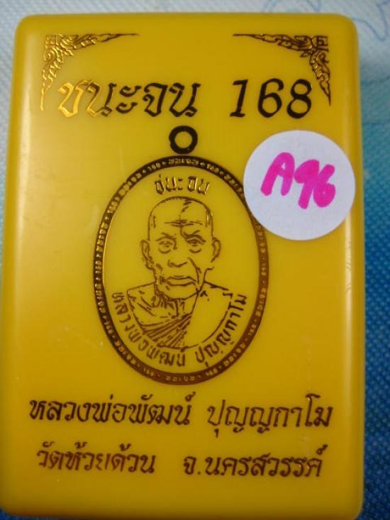เหรียญชนะจน 168 เนื้อชนวนหน้ากากเงินประกบเต็มแผ่น หลวงพ่อพัฒน์ วัดห้วยด้วน (---A96---) |
