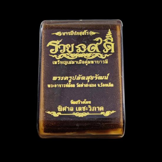 พระอาจารย์ต้อม วัดท่าสะแบง จ.ร้อยเอ็ด รุ่นรวยนะ9ดี พิมพ์เสือคู่บารมี ( เนื้อเงินลงยาแดงฝังพลอยเขียว ) No.126 พร้อมกล่องเดิม |