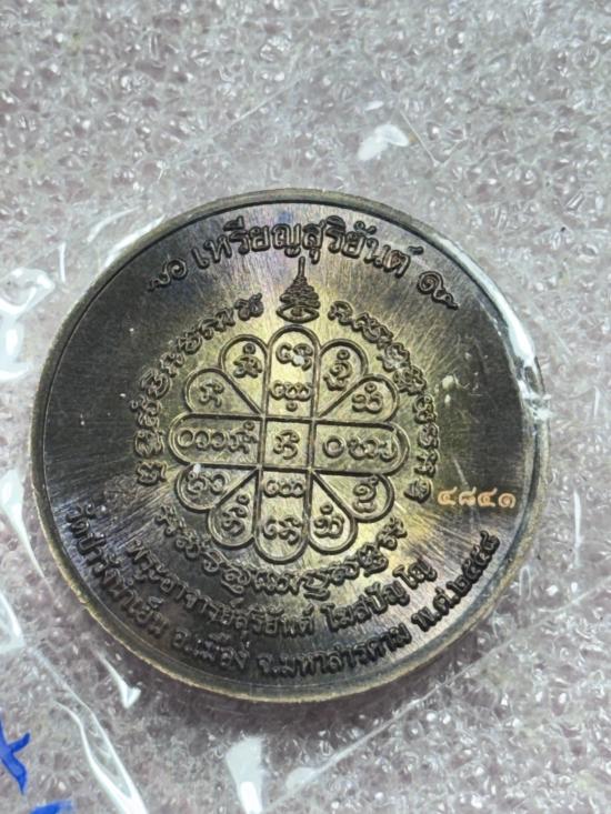 -เริ่ม 120 บาท-เหรียญรุ่นสุริยันต์ ปี2558 พระอาจารย์สุริยันต์ โฆสปัญโญ วัดป่าวังน้ำเย็น เนื้อสัตตะโลหะ จำนวนสร้าง 5,999 เหรียญ หมายเลข 4841
