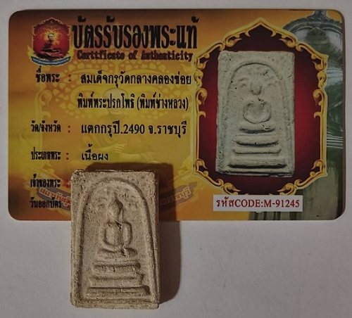 พระสมเด็จกรุวัดกลาง คลองข่อย พิมพ์พระปรกโพธิ์ (พิมพ์ช่างหลวง) ปี 2490 จ.ราชบุรี |