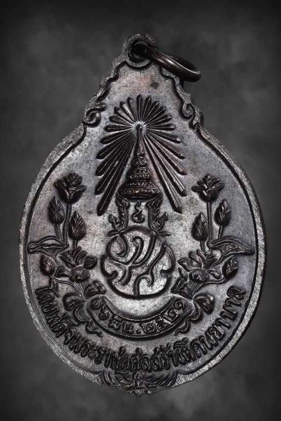 ด้านหลัง พระปรมาภิไธยย่อ ภปร. พระจุลมงกุฎเปล่งรัศมีอยู่เบื้องบน โดยเสด็จพระราชกุศลสร้างตึกพยาบาล ๑๖ มีนาคม ๒๕๒๑