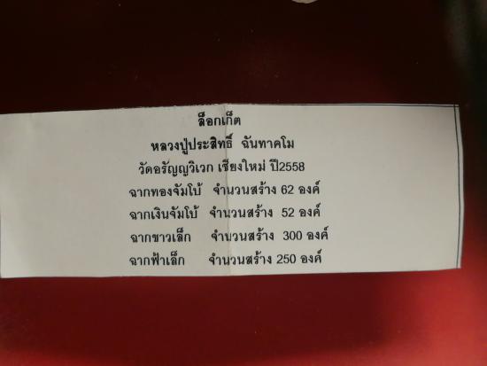 ล็อคเก็ตพิมพ์จัมโบ้ ฉากทอง หลวงปู่ประสิทธิ์ ฉันทาคโม วัดอรัญญวิเวก อ.แม่แตง จ.เชียงใหม่ พร้อมใบฝอย พิมพ์ฉากทอง จัมโบ้ สร้าง 62 องค์ เคาะแรกถึงขั้นต่ำครับ LINE ID : sumsawang